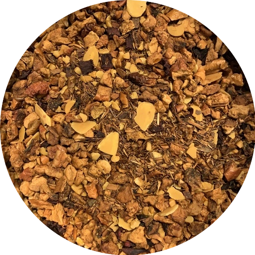This rooibos tea combines vanila with almond to create a smooth and sweet dessert tea. Hint of bourbon combine with beany vanila make an autumn evening near the fire momory worth repeating.